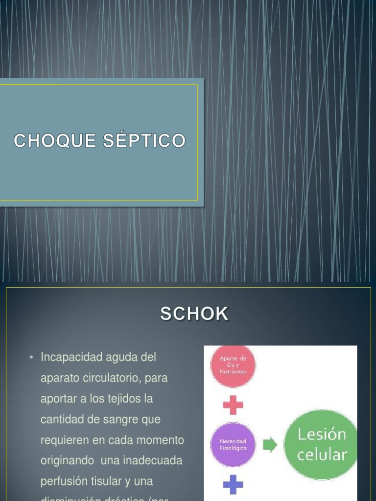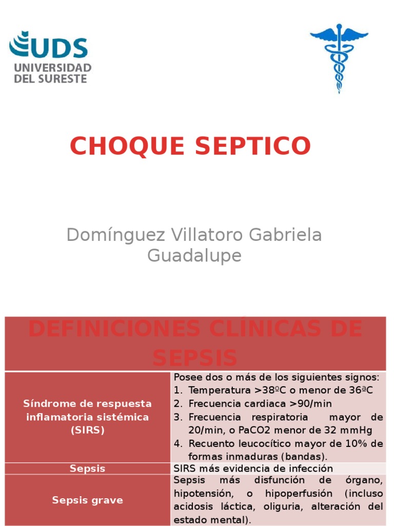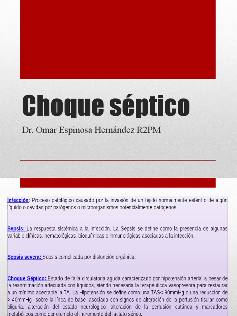 Choque séptico é um subconjunto da sepse com aumento significante da mortalidade devido a anomalias graves de circulação e/ou metabolismo celular. O choque séptico é definido como sendo uma complicação grave da sepse, em que mesmo com a realização do tratamento adequado com a reposição de fluidos e antibióticos. Choque séptico secundario a fiebre por chikungunya no congénita en un lactante menor: Hipotermina o hipertermina alteracion de estado de alerta hipotension fc <90 o >160. Extremely preterm infants study in sweden (express).